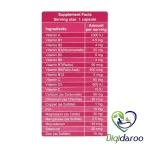 - این محصول علاوه بر ویتامینها حاوی انواع مواد معدنی از قبیل کلسیم و آهن و زینک و منیزیم و کروم و سلنیوم است.