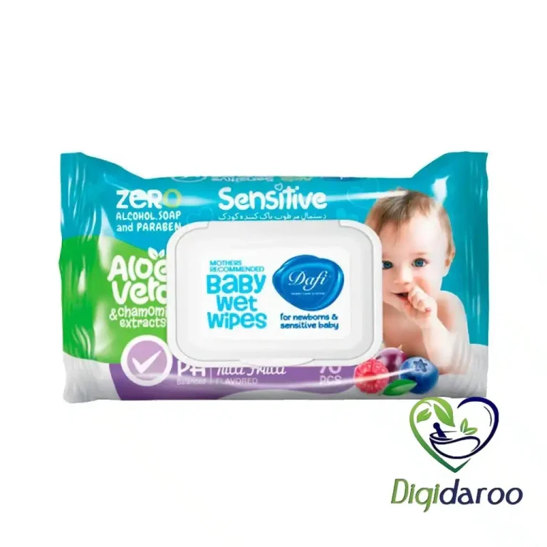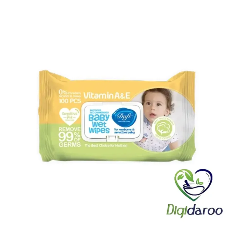 دستمال مرطوب کودک دافی حاوی عصاره آلوئه ورا و بابونه برای محافظت بیشتر از پوست حساس کودک است. این دستمال بهترین مرطوب کننده به همراه ویژگی ترمیم کنندگی پوست کودک است.