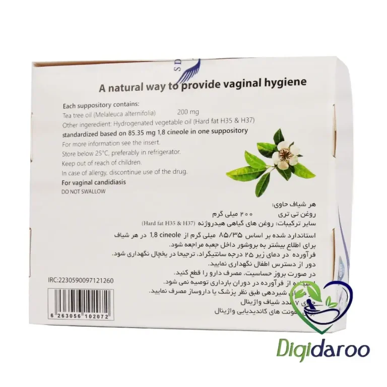 شیاف واژینال سیموواژ سیمرغ دارو عطار با دارا بودن تی تری با خاصیت آنتی باکتریال موجب متعادل کردن فلور واژن و درمان عفونتهای کاندیدایی و باکتریایی واژینال میشود.