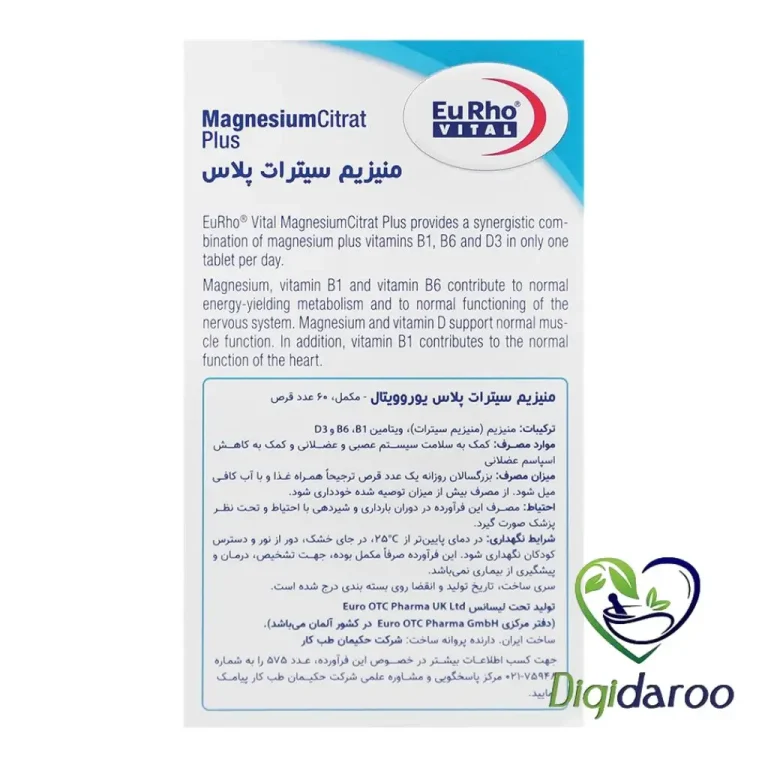 قرص منیزیم سیترات پلاس (Magnesium Citrat Plus) یوروویتال 60 عددی