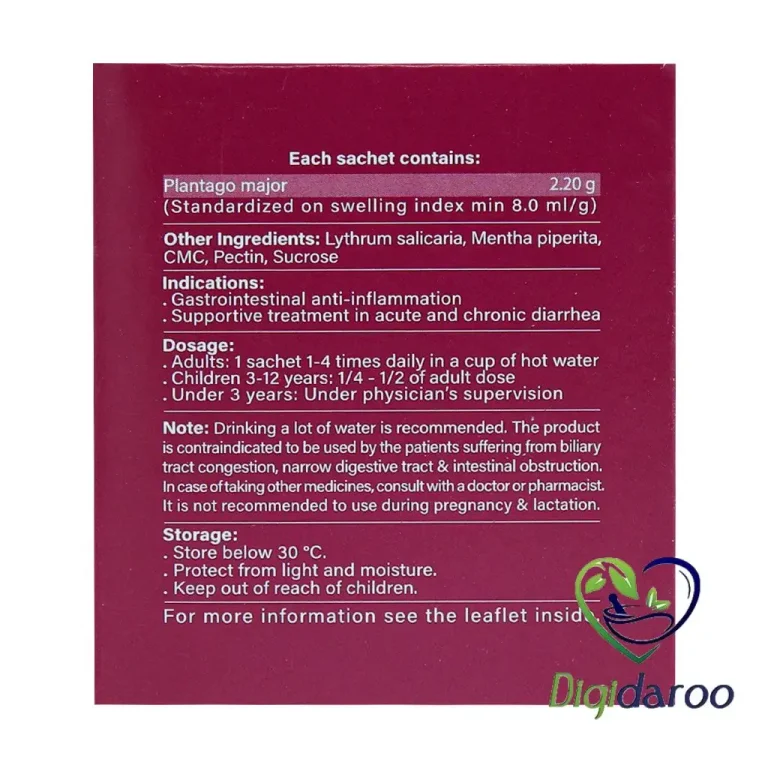 ايـن دارو با داشـتن مـواد مـوثره موسيلاژ و صمغ دارای اثـرات نـرم کننـده، ضـدالتهاب، ضـد اسـپاسـم، جـذب سمـوم و ضـد عفونـی کننده بـوده، حرکات پريستالتيک روده را که در اثر بيماريهای اسهالـی افزايـش مـی يابد، تنظيم و به حالـت طبيعـی بر مـي گـرداند و با پانـسمان مخاط روده و التيام آزردگی ها، از سلولهای پوششی روده محافظت می نمايد.