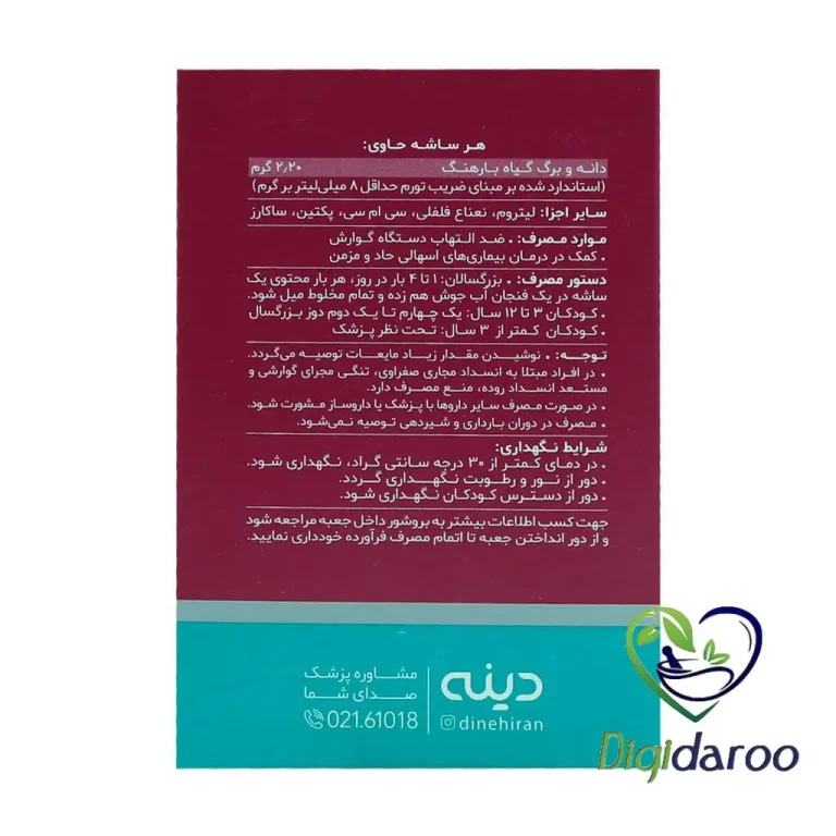 •  کودکان 3 تا 12 سال: حداکثر 4 بار در روز هر بار ¼ تا ½ محتوی ساشه را در یک فنجان آب جوش هم زده و تمام مخلوط میل شود .