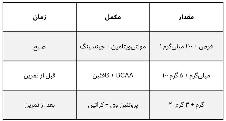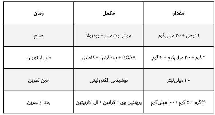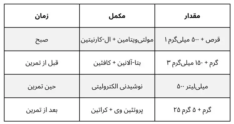 برنامه پیشنهادی مصرف مکملهای ورزشی