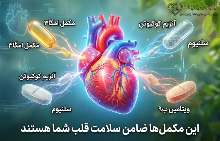 | کوآنزیم کیو ۱۰ | تولید انرژی در سلولهای قلبی و محافظت آنتیاکسیدانی |
