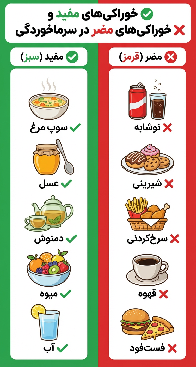 سرماخوردگی یکی از شایعترین بیماریهای ویروسی است که همه ما حداقل یک بار در سال با آن دستوپنجه نرم میکنیم. اگرچه این بیماری معمولاً خطرناک نیست، اما علائم آزاردهندهای مانند گلودرد، گرفتگی بینی، بیحالی و سرفه میتواند روال عادی زندگی ما را مختل کند. در چنین شرایطی، بسیاری از افراد بلافاصله به دنبال داروهای شیمیایی میروند، اما حقیقت این است که آشپزخانه شما میتواند به اولین و موثرترین درمانگاه تبدیل شود. تغذیه در دوران بیماری، فراتر از صرفاً تامین انرژی بدن است؛ در واقع انتخابهای غذایی صحیح میتوانند مانند یک کاتالیزور، سرعت ترمیم بافتهای آسیبدیده و تقویت گلبولهای سفید را افزایش دهند. هدف از این مقاله، بررسی دقیق و علمی مواد غذایی، دمنوشها و پرهیزهایی است که به شما کمک میکند دوران نقاهت را با سرعت بیشتری پشت سر بگذارید.