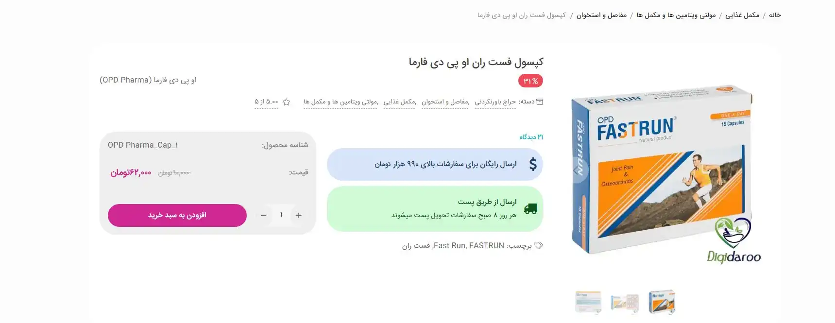 - خرید آسان و سریع: با چند کلیک، میتوانید Fastrun را به سبد خرید خود اضافه کرده و درب منزل تحویل بگیرید.