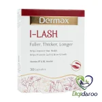 کپسول آی لش درمکس با ترکیب منحصر به فرد بیوتین، ویتامین B5 و دیگر مواد مغذی زینک، اینوزیتول و مواد مغذی دیگر به تقویت مژه و ابرو، افزایش ضخامت و استحکام آنها کمک میکند و از ریزش ناشی از کمبود ویتامینها جلوگیری میکند.